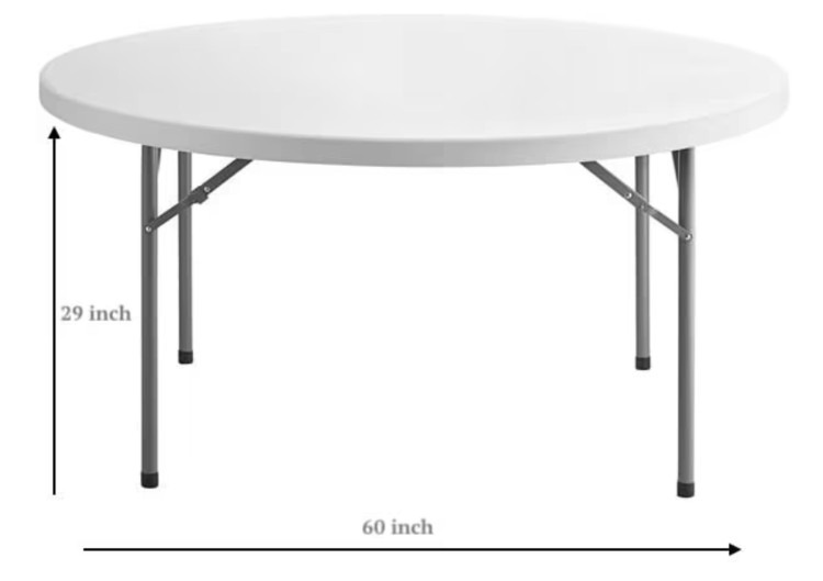Our 60” round table is made of durable white resin and comfortably seats 8–10 guests. It offers plenty of space for place settings, centerpieces, shared dishes, or decorations without feeling crowded. This versatile table is perfect for family-style meals, parties with food and condiments, or even as a cake or gift table. A great option for dining, gathering, and celebrating at any event.